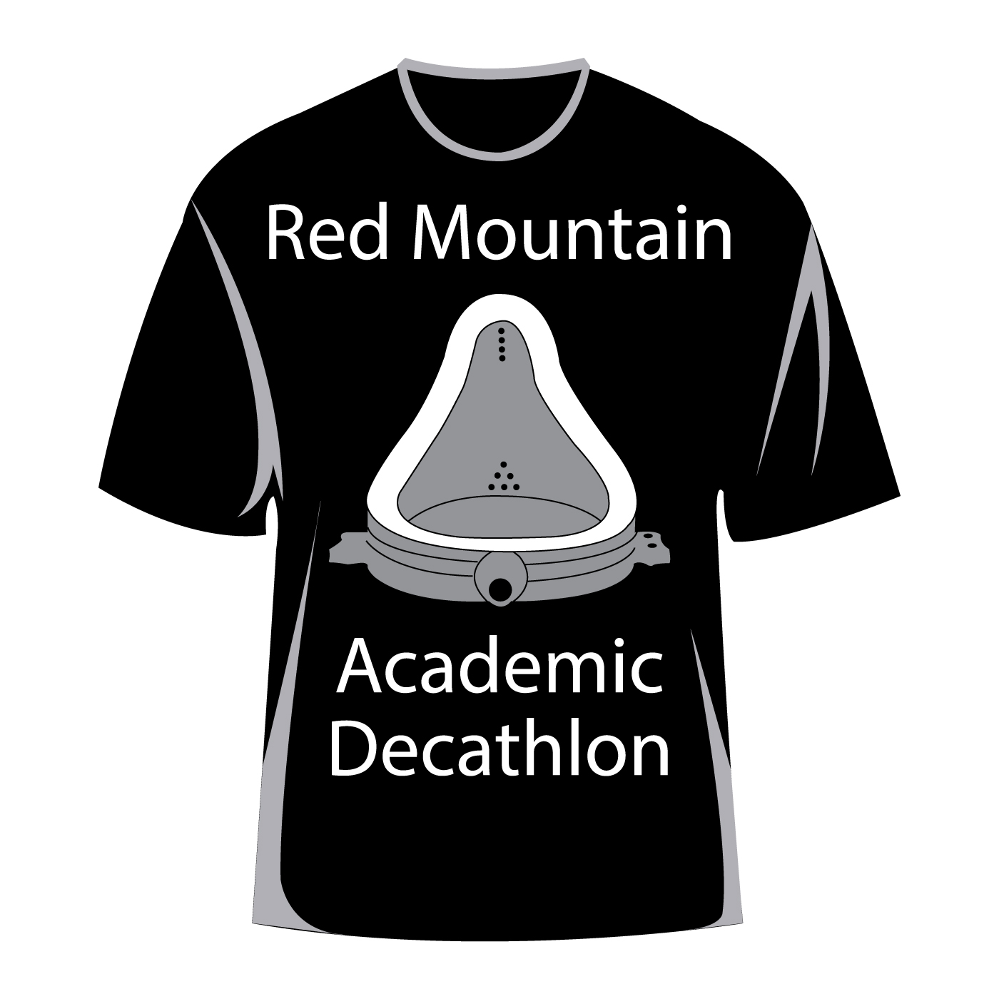 Red Mountain’s Academic Decathlon has always been a fan of pushing the envelope. Their theme for the 2014 competition included post modernism in art, so they decided to feature Duchamp’s Fountain sculpture, in the name of intellectual humor. The task was mine to recreate the famous sculpture in a 2 dimensional form that was simple enough that we could screen print it onto a t-shirt. This is an example both of my command of the pen tool in adobe illustrator and my ability to create a likeness that pleased both the client and the school’s administrators.